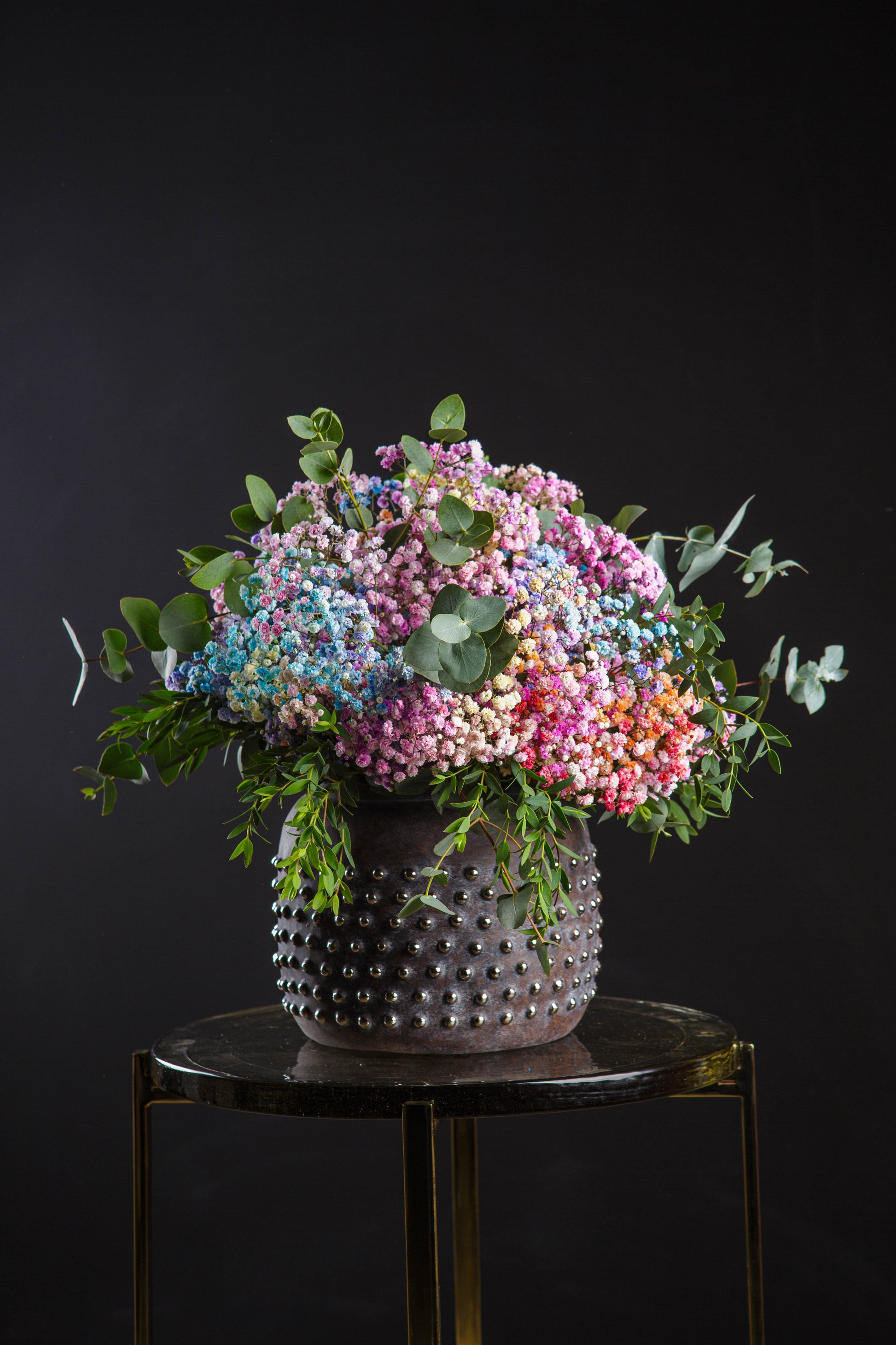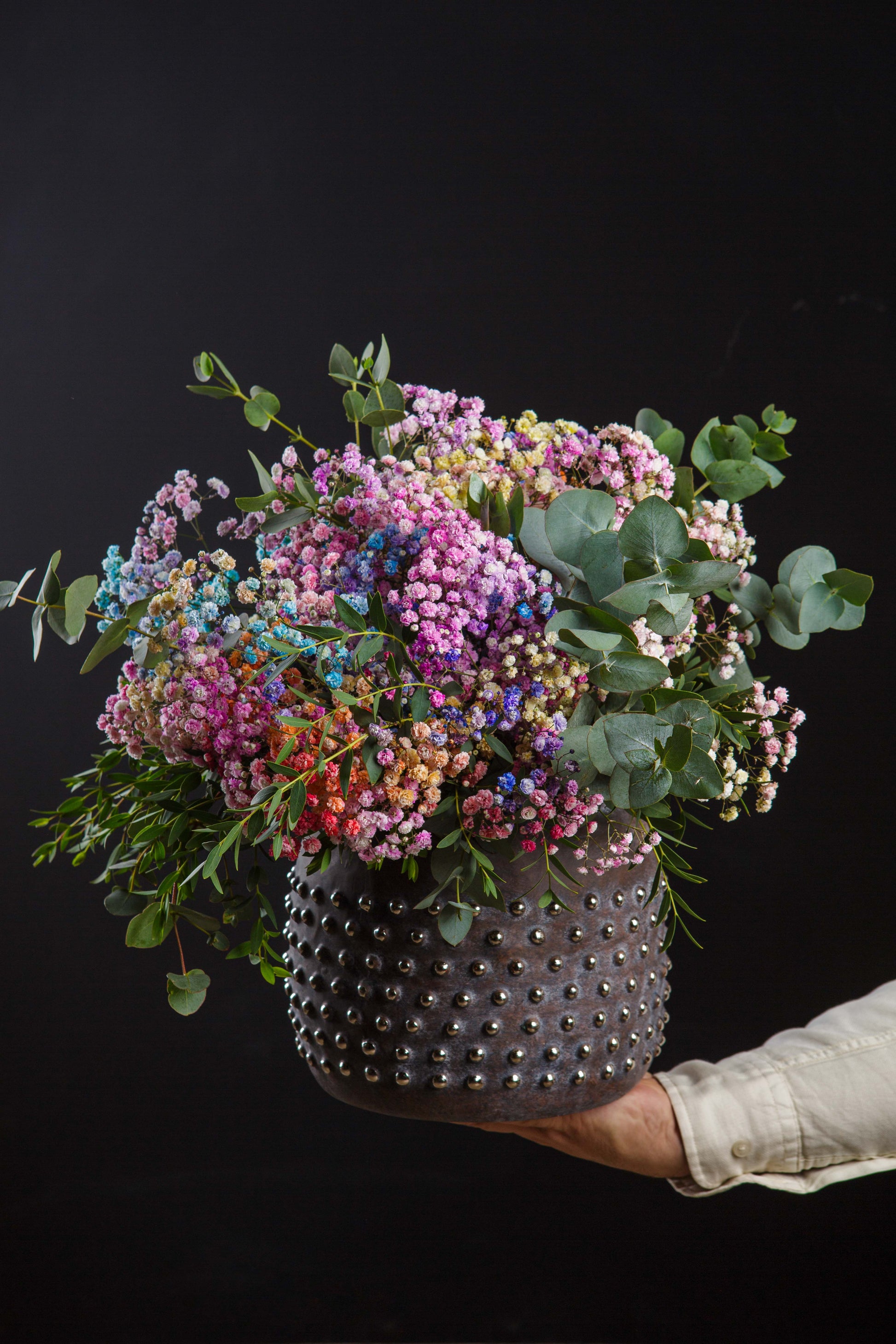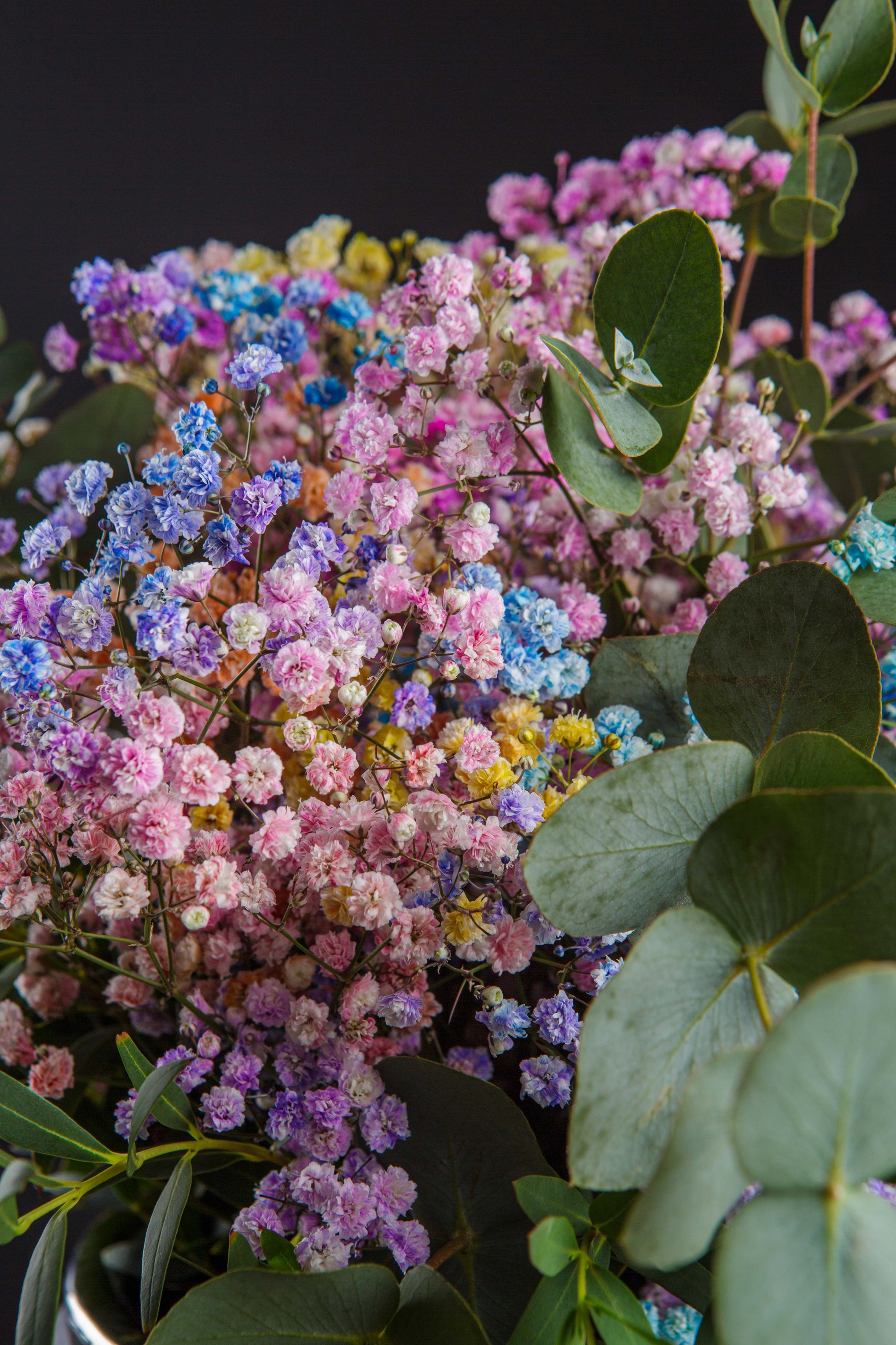 Un arreglo floral delicado y encantador, compuesto por paniculata en suaves tonos azul, fucsia y rosa. Su diseño evoca dulzura y alegría, convirtiéndolo en la elección perfecta para iluminar cualquier espacio o regalar en momentos especiales. Este arreglo único transmite calidez y ternura, ideal para celebrar el amor, la amistad o simplemente para sorprender con un detalle lleno de color y vida.