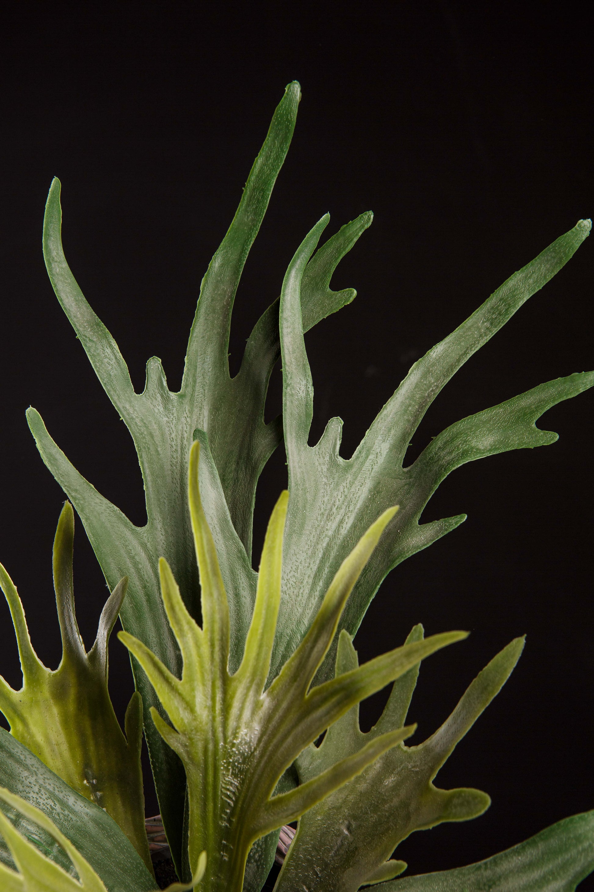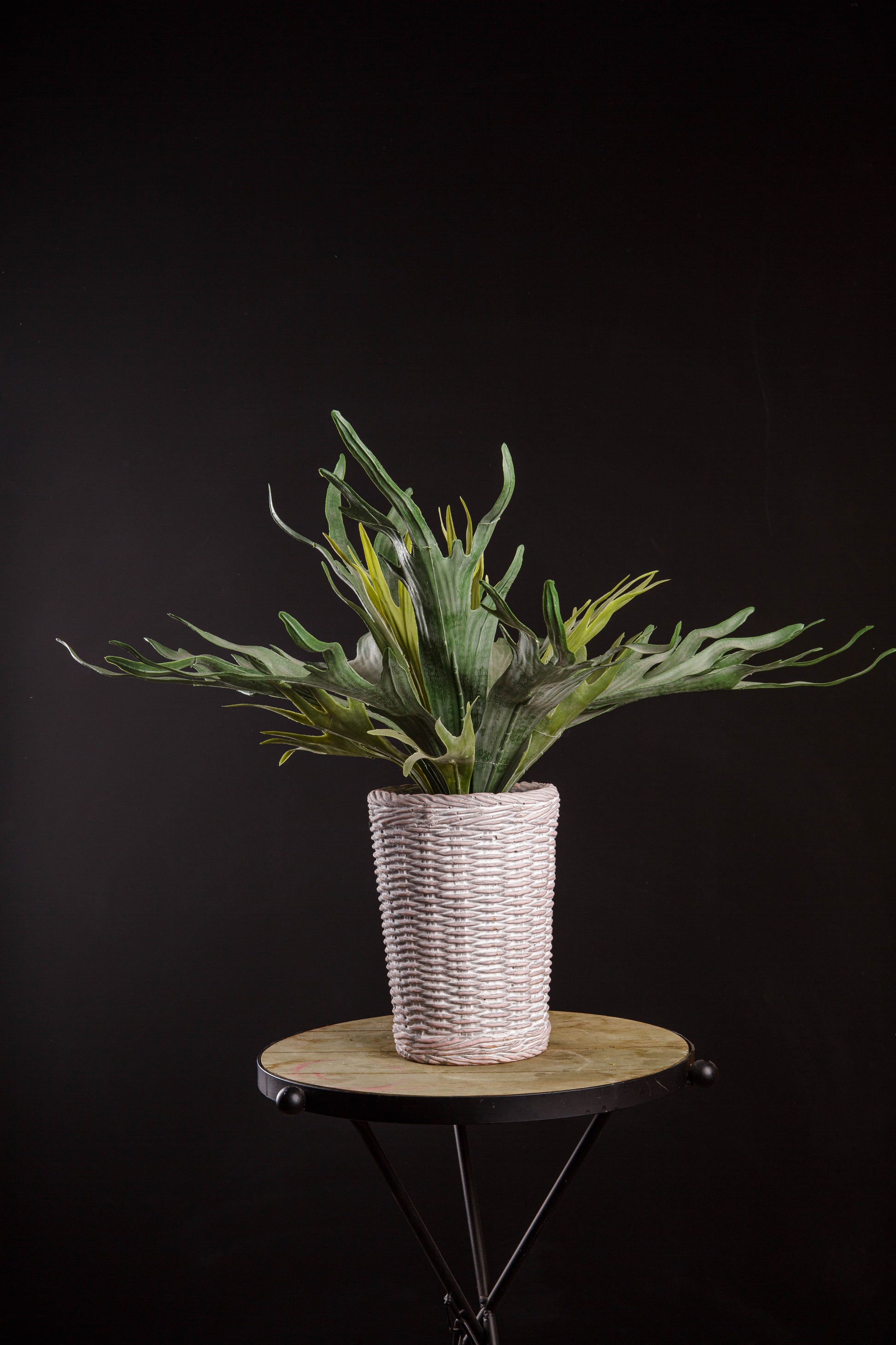 Esta planta artificial llamada Platicerium, conocido como Cuerno de Alce, es ideal para cualquier espacio. Su apariencia realista y su tonalidad verde la convierten en una opción decorativa versátil para hogares y oficinas sin preocupaciones de riego o cuidados.